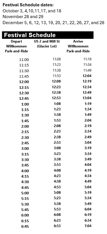 Due to road work, Route 22 to Leavenworth will stop at Willkommen Park-and-Ride – riders travelling to and from Leavenworth will need to transfer and use Route 32 during these hours. The Route 22 will not travel west of Willkommen Park-and-Ride between 10:00am-6:45pm.