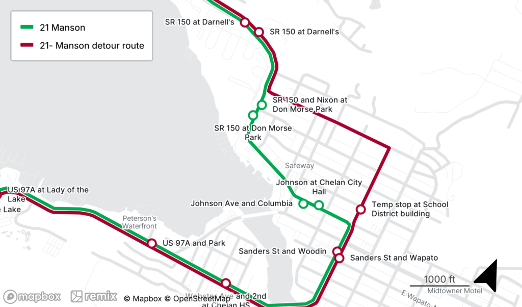 Effective 3/31/26 route 21 will travel the detour below due to a closure on Manson Hwy for sewer maintenance.